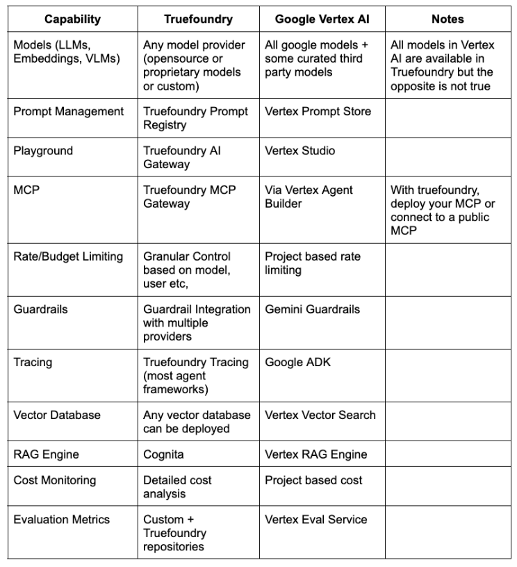 For typical software engineering projects this has been figured out previously but AI products are unique and needs different sets of tools. That is where AI native infrastructure comes into picture through companies like Truefoundry or products Google Cloud Vertex AI. In this article we will be comparing the two in terms features, ease of use, cost and enterprise integration. Although there are other platforms also available we will limit our scope to these two for now. If you are an enterprise looking to build an AI product internally or externally facing, this article will guide you to make the right decision.